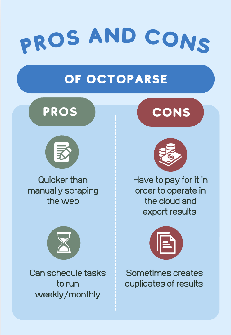 Despite these issues, we were able to get a large portion of information from Octoparse that we would have had to get manually otherwise. We also found that it was possible to schedule tasks to run weekly or monthly on Octoparse, meaning we could set it up ahead of time and would not have to go into the program every time we needed more information.