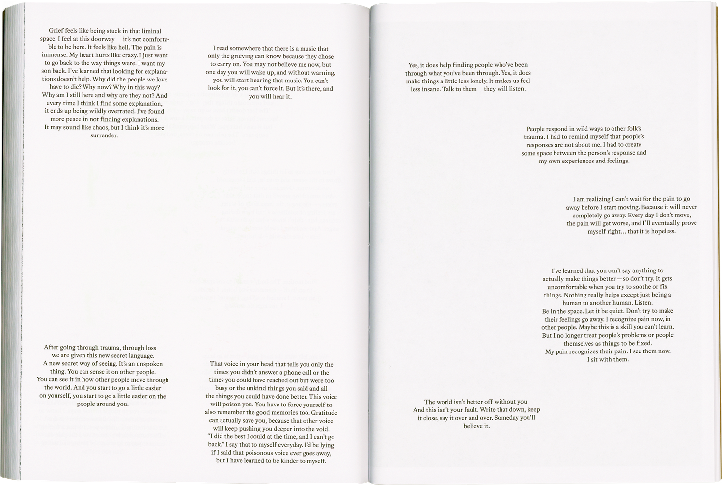After going through trauma, through loss, we are given this new secret language. A new secret way of seeing. It’s an unspoken thing. You can sense it in other people. You can see it in how other people move through the world. And you start to go a little easier on yourself, you start to go a little easier on the people around you.